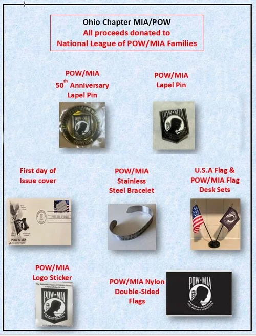 The Ohio Chapter MIA/POW donates 100% of the profits on their POW/MIA merchandise distribution to the